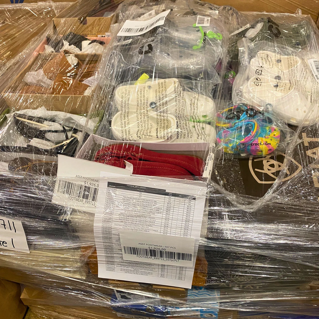 The shoes pallet consist of all brands of shoes in and sizes which comes 107 pieces per pallet. Perfect for online resell $1400, bin stores, and discount shops , this manifested pallet offers high value at an unbeatable price. Sold as-is, no returns accepted, but you can buy with confidence from a reputable company with excellent reviews.